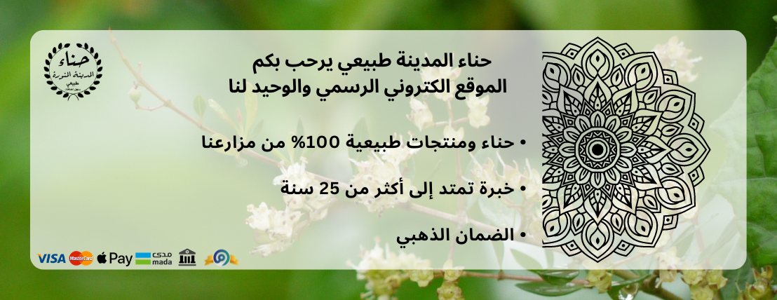 متجر حناء المدينة الطبيعي بدون إضافات او اسمده او كيماويات يسقى على مياه نظيفة من مزارعنا الخاصة.